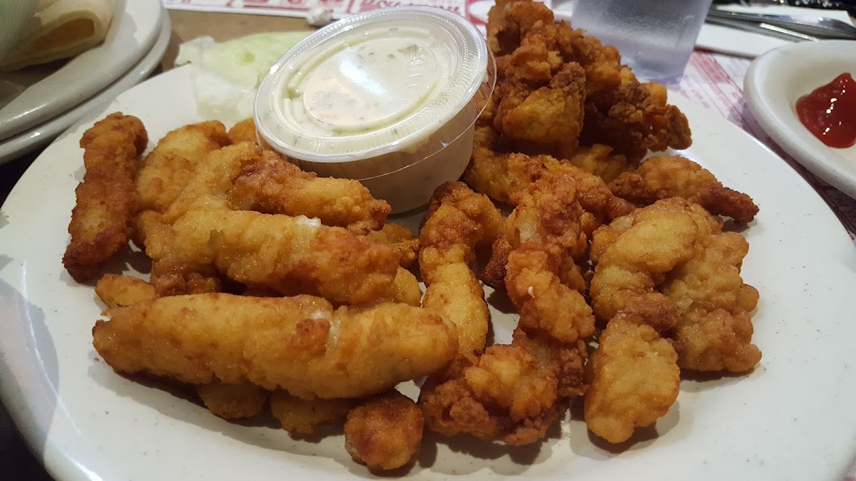 Kid friendly booths. Crinkle cut fries are amazing! Get pizza well done (so there is no flop) and with burnt edges. Garlic & pepperoni pizza both were very good! Saturday early lunch was steady but no wait.
